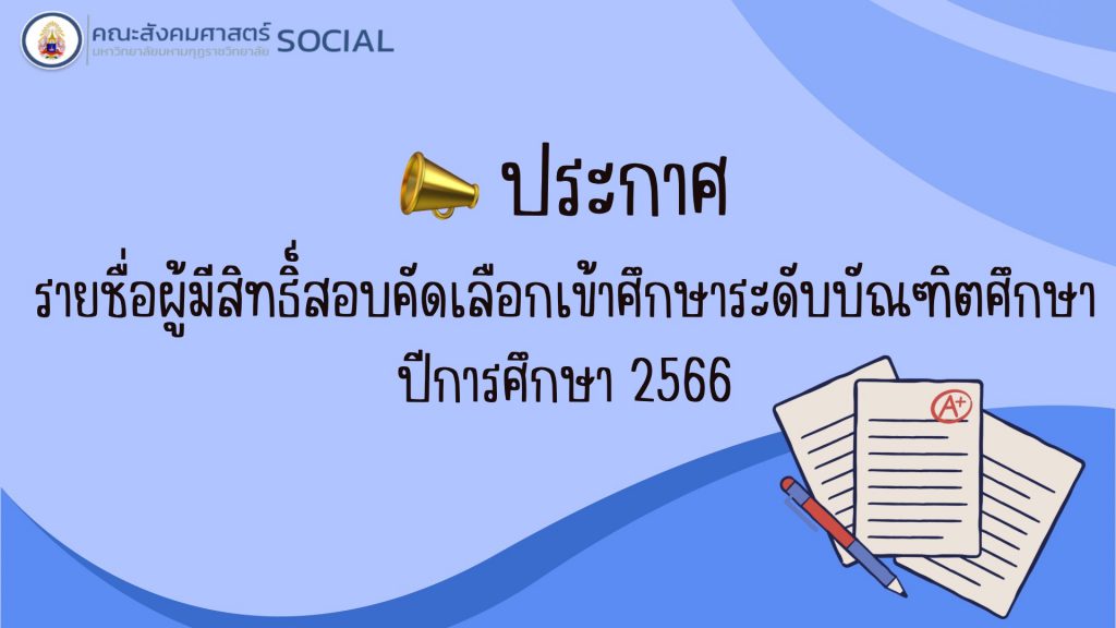 ประกาศรายชื่อผู้มีสิทธิ์สอบคัดเลือกเข้าศึกษาระดับบัณฑิตศึกษา ปีการศึกษา 2566